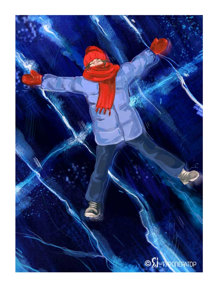 Осмотр знаменитого голубого льда. Зимний Байкал, без преувеличения, самый большой каток в мире. И самый красивый. Лед из чистейшей байкальской воды имеет голубоватый оттенок, порой даже ярко-голубой, почти синий. Байкальский лед — как омуль и нерпы: легендарная и уникальная особенность озера-моря. Забереги, колобовник, шах, осенец — у байкальского льда десятки форм и названий. Здесь есть и торосы высотой с дом, и страшные становые щели, и неопасные, но бесконечно красивые трещины — словно в лед вмерзли белые шифоновые ленты. Но главный восторг непременно вызывает сверхъестественная прозрачность льда — все, кто видит байкальский лед впервые, плюхаются на живот и с детским любопытством пытаются что-нибудь высмотреть в глубинах озера.