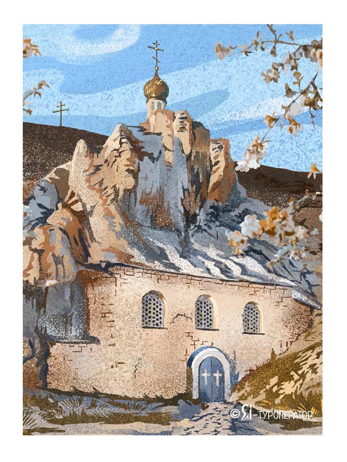 Есть в монастыре и своя гора Голгофа – туда можно подняться самостоятельно в свободное время. С её вершины вашему взору откроется живописный вид на окрестности с белоснежными пятнами меловых каньонов и гор.